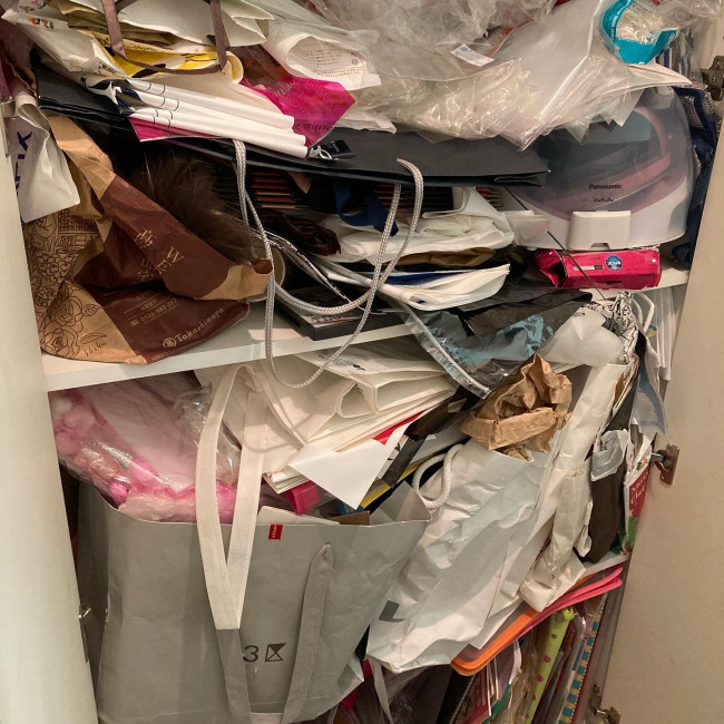 ・クリーニングからかけられたビニール・大量にあるハンガー